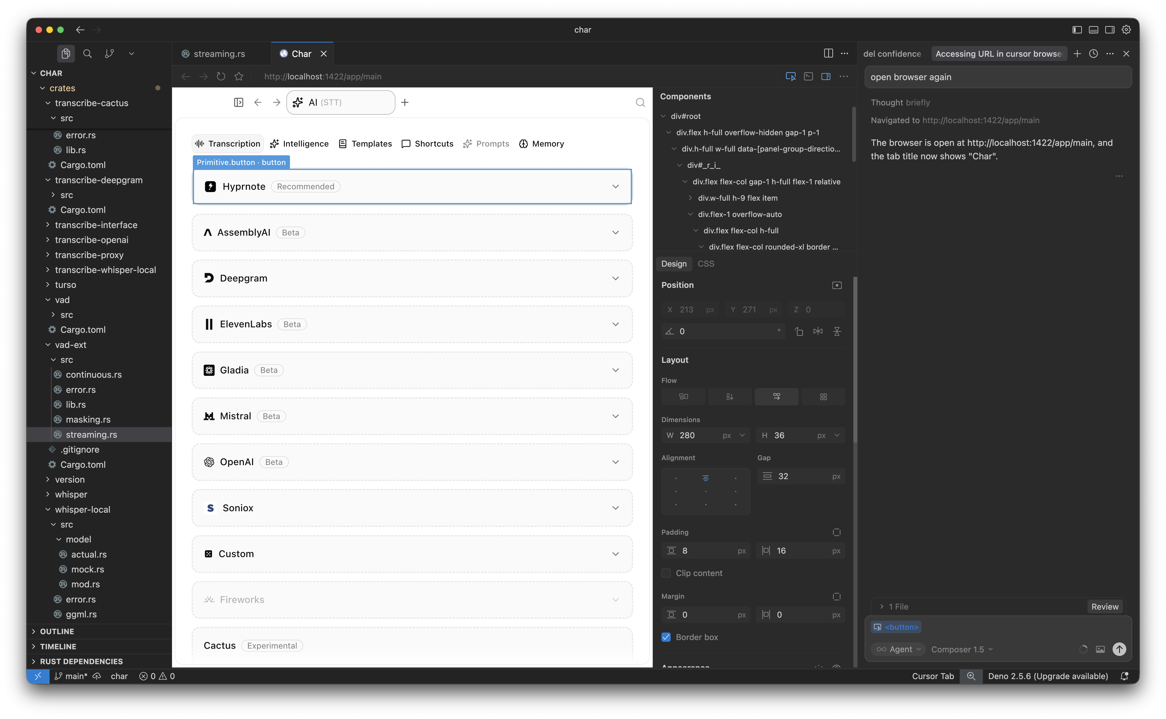 1) tui - everyone loves a good tui - i also used crossterm to not make a slop like claude code